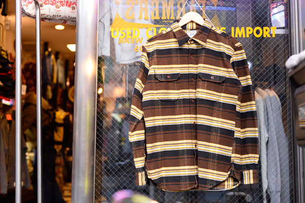 アメカジセレクトからUSED、オリジナルアイテムまで展開する大須の老舗ショップ『FARMER’S』が毎年春と秋に作成するオリジナルブランド「Cycle Works」のネルシャツが完成。実はこのネルシャツ、昨秋発売したネルシャツの裏面を表面に切り替えたもの。綺麗なメキシカンラグ調のボーダー柄に一目惚れしたスタッフ達による満場一致でリリースが決定した一品。全サイズ合計で限定15着となっているので気になる方はお早めに!