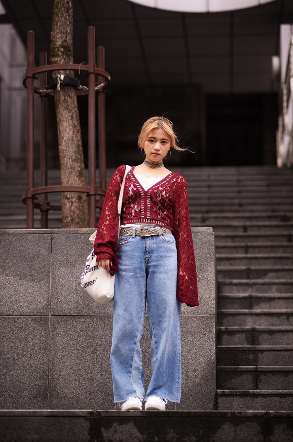 トップス(FOREVER21)、ボトムス(Bershka)、靴(CONVERSE)、カバン(American Apparel)