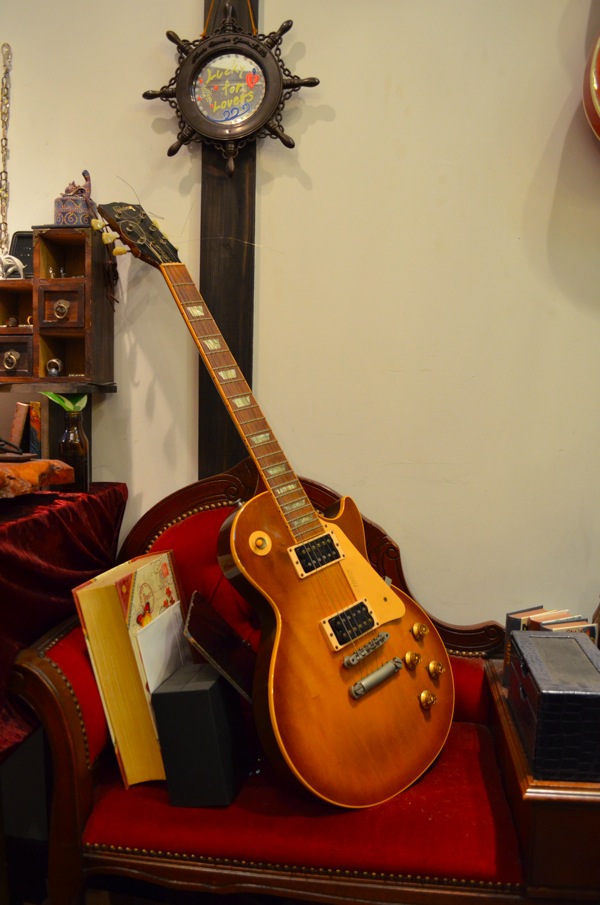 20歳の時から大事にしているギター。バンド経験のある角さん、お店に大切に保管しているが、たまに弾いてみることもあるとか。3本持っているギターの中でも、「スタジオに行く際に必ず持っていく一本がコレ」。がしかし、実際にはドラム担当の角さん(笑)。最近購入したモノはバイク! 「来年から通勤の手段で使う」とのことなので、乗ってきた際には撮影させもらいますね♪ 乞うご期待!