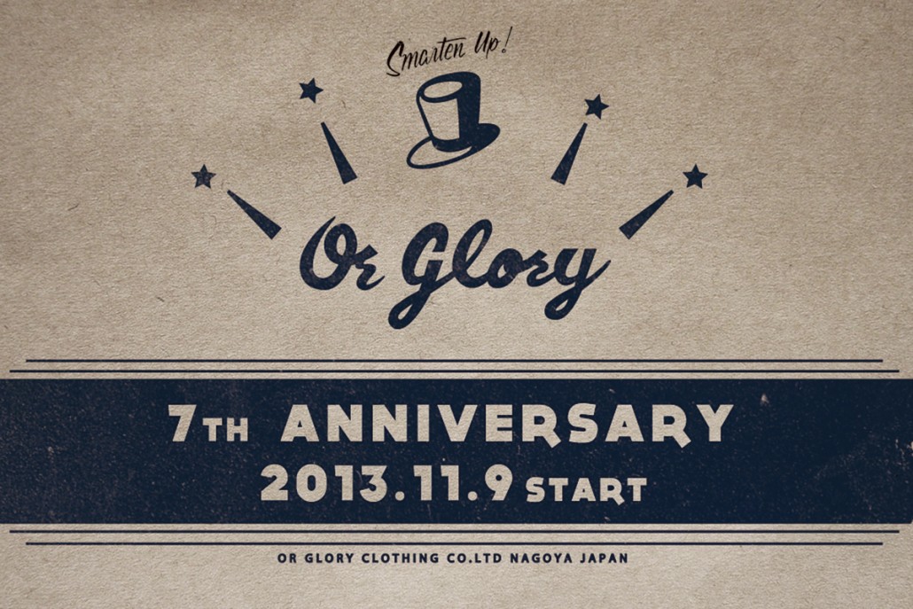 11月11日(月)でリニューアル7周年を迎える『Or Glory Nagoya』が、9日(土)より様々なイベントを開催。① 7th Anniversaryシャツを販売。全7色の展開でそれぞれ仕様・柄が異なるのが魅力。② 9日(土)~24日(日)までの期間にジャケットをオーダーして頂いた方に、選んでいただいた生地で蝶ネクタイをプレゼント。③ 11月22日(金)インストアライブを開催。伝説のスカバンド“Blue Beat Players”のギタリスト、さらに“Soulcrap”のボーカルとして活躍するTAIKI.N氏によるソロライブ。④ イベントの最後を締めくくる、7th Anniversary Partyを12月7日(土)新栄のvioにて開催。豪華すぎるイベント詳細はBLOGにてチェック!
