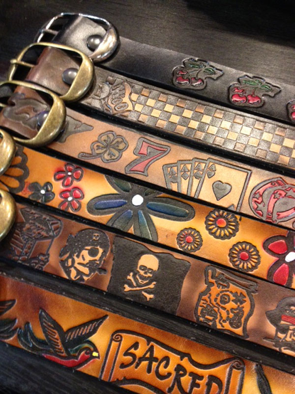 名古屋の老舗アメカジショップといえば…そう『FARMER’S』。そこで見付けたブラックニーの型押しレザーベルト。70~80年代を知る人には懐かしく、逆に若い人には新鮮に感じられるこのベルトは、アメリカ東部のレザーメーカーが作っている完全“Made in USA”。昔ながらのデザインも多く肉厚の牛革に型押ししているので、使い込む程に表面の色が薄れ革独特のツヤにその絵柄が馴染んでくる。バックルも簡単に変えられるので、コーディネートのポイントにはもってこいのオススメアイテムだ!