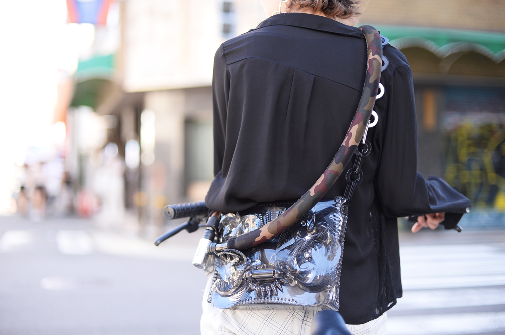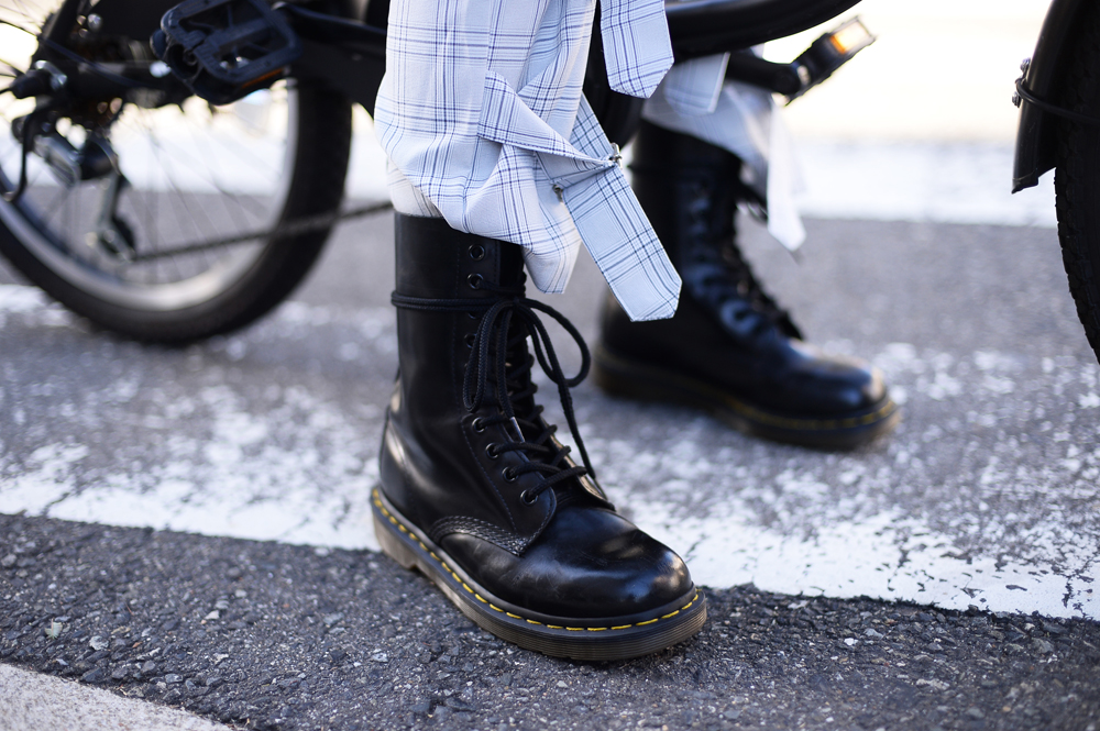 トップス(USED)、ボトムス(Faith)、靴(Dr.Martens)、カバン(Mame