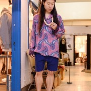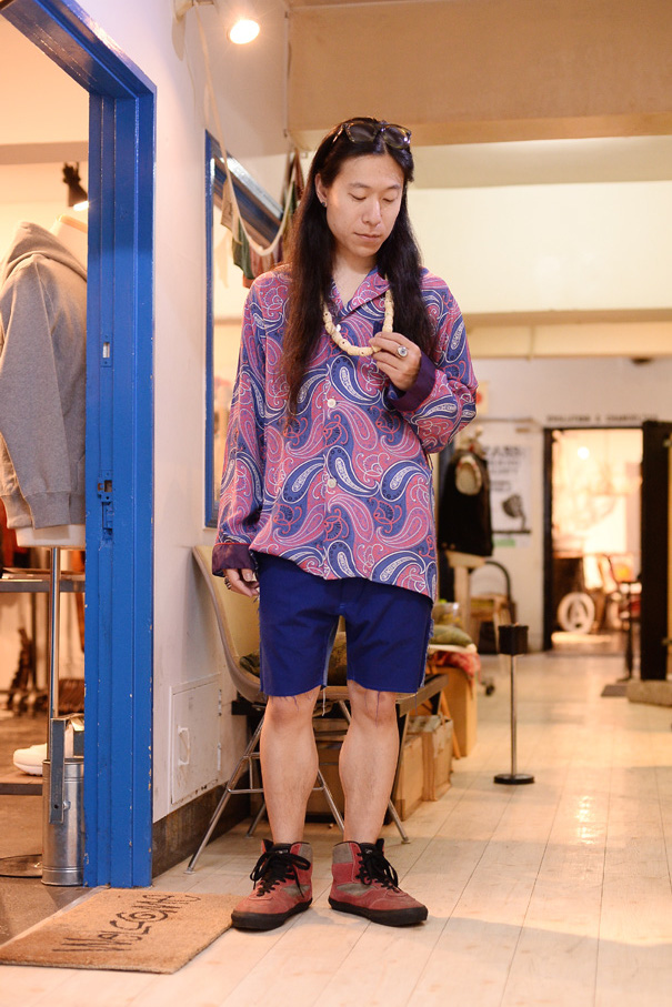 - パジャマシャツ/¥17500(VINTAGE)、リメイクショーツ/¥21000(third hand creation)【SIZE:M】、スニーカー/¥9000(USED VANS)【SIZE:US10】、シルバーリング/¥65000(THE GREAT FROG)、サングラス “POOPY”/¥18000(C×T×M)【SIZE:FREE】 ※全て税別