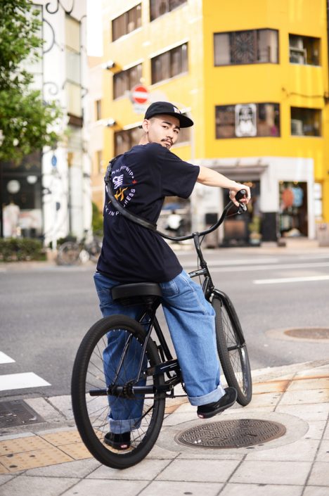 トップス(HELK)、ボトムス(HELK)、靴(YOGA)、時計(HYGGE)