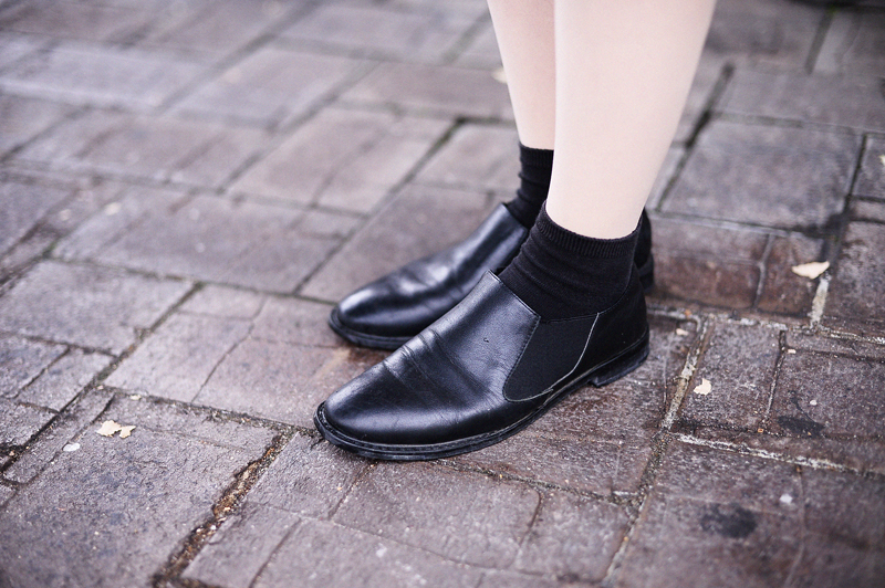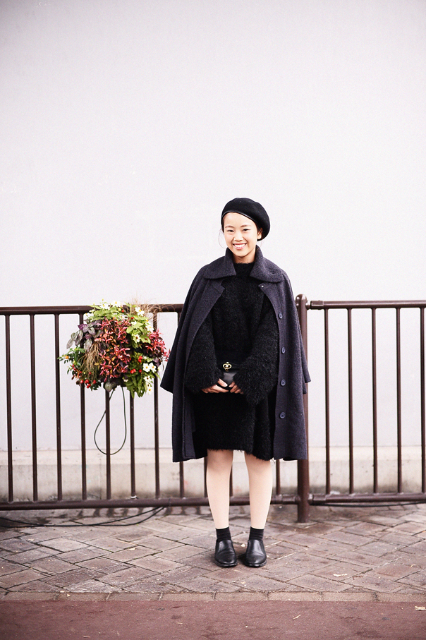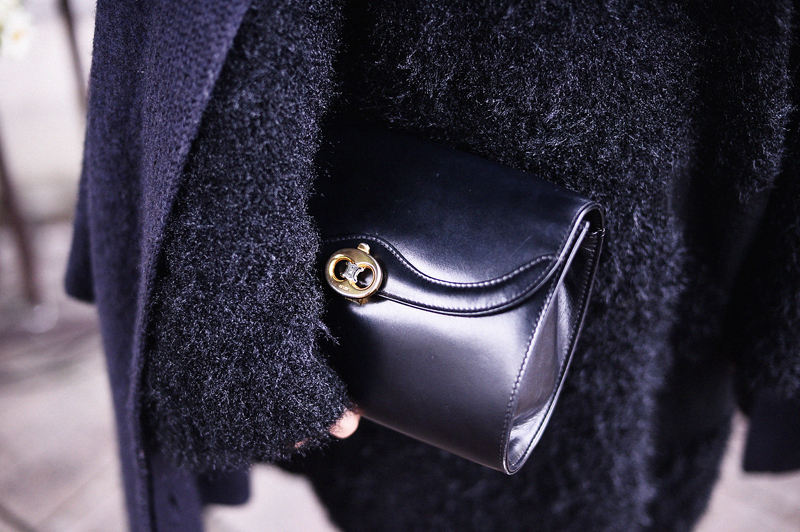アウター(USED)、トップス(CHEAP MONDAY)、靴(haushca)、帽子(SLY)、カバン(CELINE)
