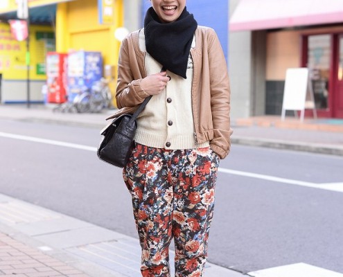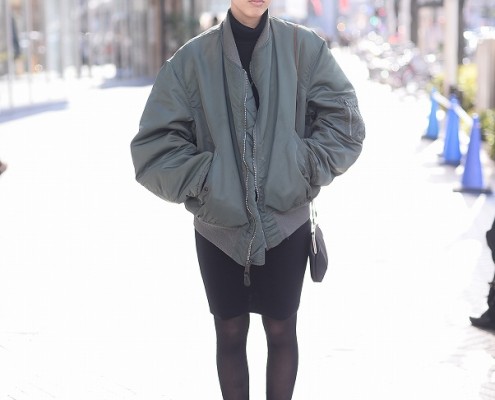 コート(RICO)、デニムパンツ(USED)、スニーカー(NIKE)、バッグ(JAM…