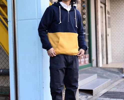 コート(USED)、デニムパンツ(USED)、スニーカー(NEW…