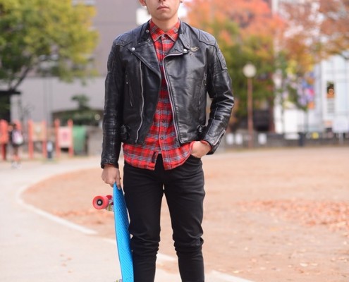 ニットキャップ(racal)、ライダースジャケット(Lewis…