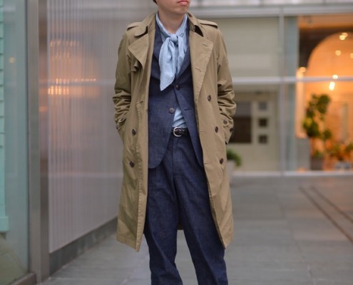 ストール(JEANASIS)、コート、ニット、パンツ(以上HARE)、ブーツ(Dr.Martens)、バッグ(LOWRYS…