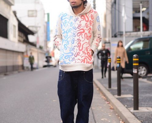 ニットキャップ、コート、パンツ(以上UNUSED)、ニット(Roberto…