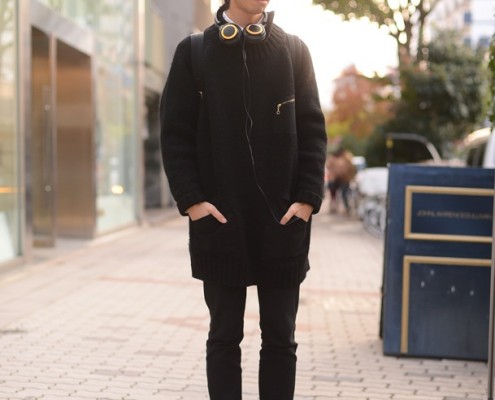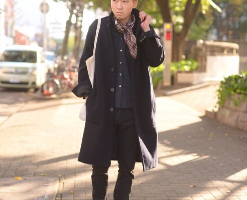 ハット、レザーシューズ(ともにUSED)、ロングジャケット(NUMBER…