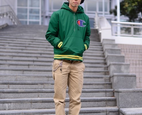 ニットキャップ(UNIQLO)、パーカ(Supreme)、パンツ(Dickies)、スニーカー(VANS)