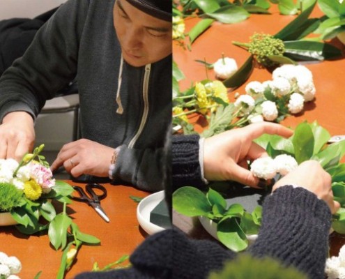 お邪魔したのは大須のお花屋さん「tooka」。週に一度、水曜日の夜に開催されるフラワーアレンジメント教室。