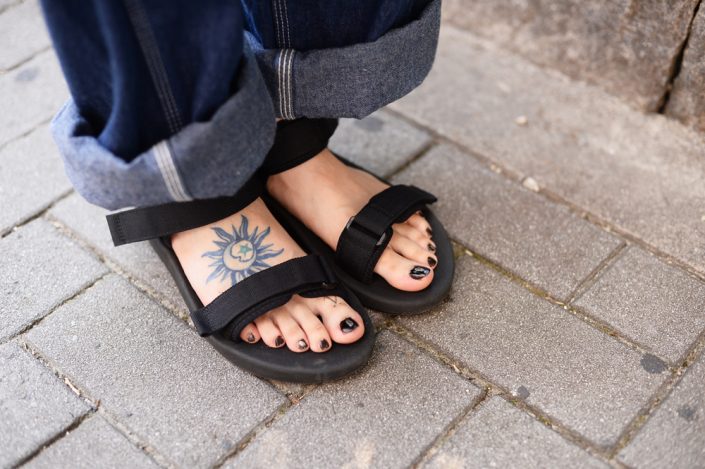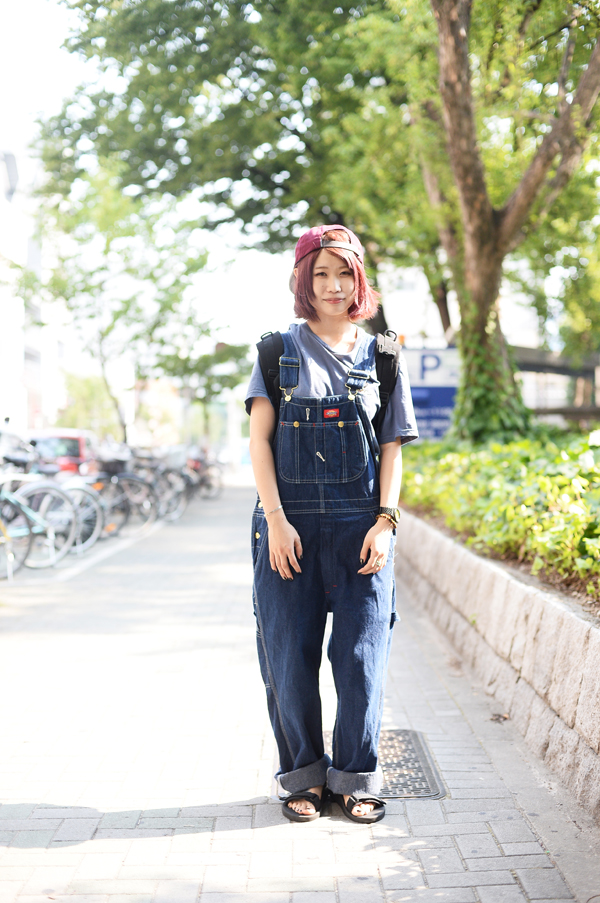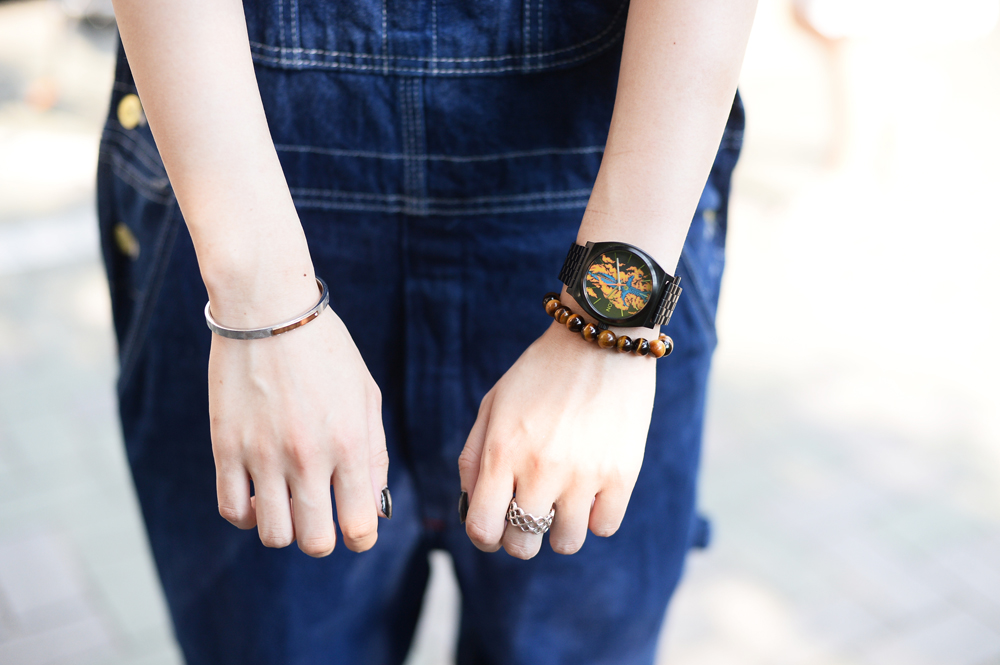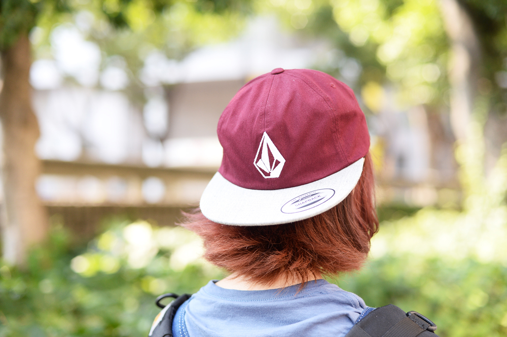 トップス(VOLCOM)、ボトムス(Dickies)、帽子(VOLCOM)、時計(NIXON)
