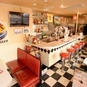 タイル張りの床・カウンター・テーブル・椅子・ポップなネオンといった、1950年代のアメリカンダイナーを再現した雰囲気抜群の『WOODS DINER』。もちろん雰囲気だけでなく、メインである本場サイズのハンバーガーをはじめ充実したフードとドリンクはどれも魅力たっぷりです♪ ランチで立ち寄るも良し。夜は23時まで営業しているので仕事終りに立ち寄ることもできる。本場を味わうなら一度『WOODS DINER』へ是非!