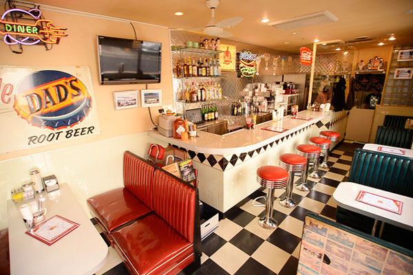 タイル張りの床・カウンター・テーブル・椅子・ポップなネオンといった、1950年代のアメリカンダイナーを再現した雰囲気抜群の『WOODS DINER』。もちろん雰囲気だけでなく、メインである本場サイズのハンバーガーをはじめ充実したフードとドリンクはどれも魅力たっぷりです♪ ランチで立ち寄るも良し。夜は23時まで営業しているので仕事終りに立ち寄ることもできる。本場を味わうなら一度『WOODS DINER』へ是非!