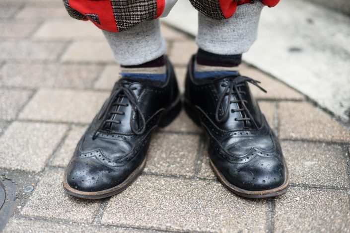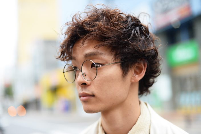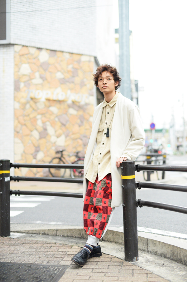 アウター(haushca)、トップス(USED)、ボトムス(USED)、靴(REGAL)、メガネ(USED)、アクセサリー(haushca)