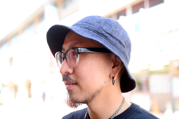 トップス(WESTRIDE)、ボトムス(TROPHY CLOTHING)、靴(WESCO)、帽子(BLACK BOOTS)、眼鏡(BLACK BOOTS)、アクセサリー(BLACK BOOTS)