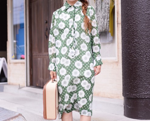ワンピース(Chloé)、Tシャツ(無印)、シューズ(tricot…