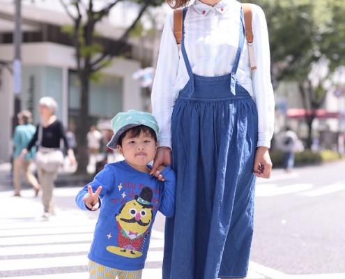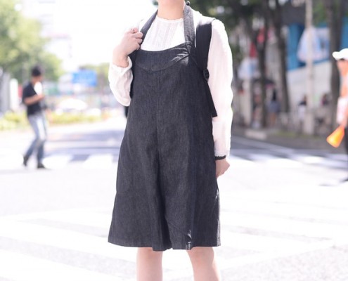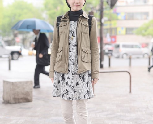 ジャケット(USED)、ワンピース(JEANASIS)、スニーカー(無印良品)