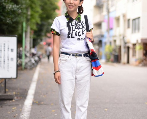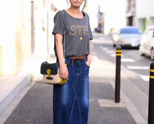 Tシャツ(USED)、デニムスカート(BEAMS)、バッグ(Another…