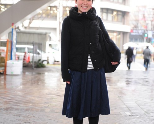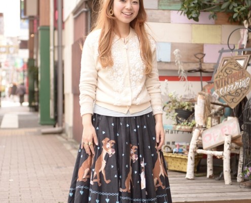 アウター(BEAMS)、トップス(?)、スカート(rhythm.war*p)、靴(ROSE…