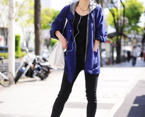 ミリタリージャケット(USED)、ワンピース(USED)、ブーツ(Dr.Martens)、帽子(Or…