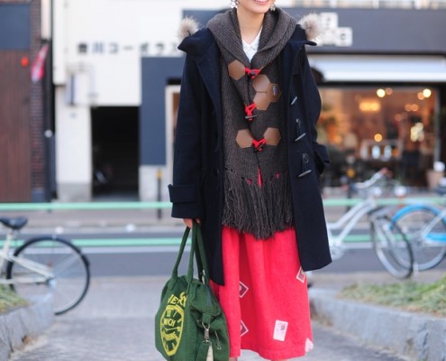 ダッフルコート(不明)、ポンチョ(ne-net)、スカート(PINK-HOUSE)、シューズ(JELLY…