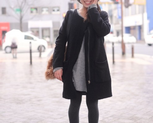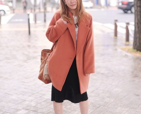 アウター、トップス(PARCO)、スカート(PAGEBOY)、ブーツ(ABCマート)、バッグ(American…