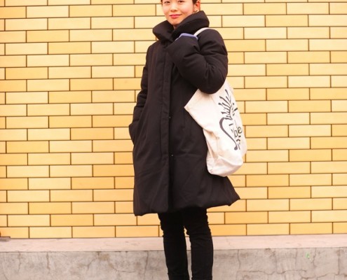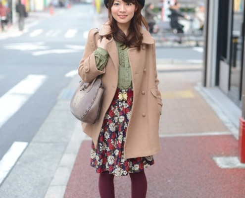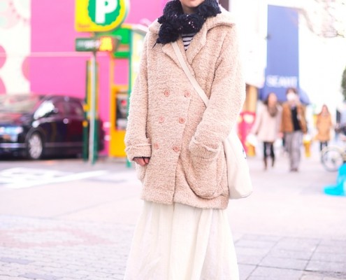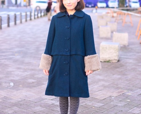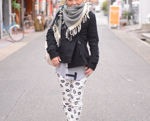 ニットキャップ(ブランド不明)、コート、バッグ(ともにLOWRYS…