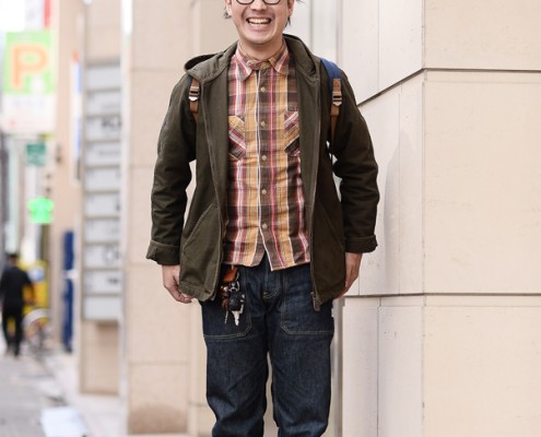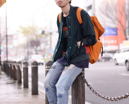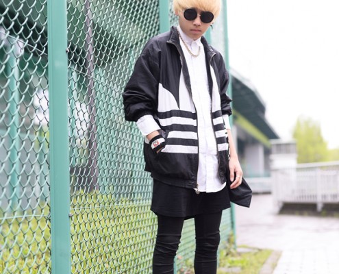 ボトムス(SASSAFRAS)、靴(adidas)、帽子(DECHO)、リュック(Mt…