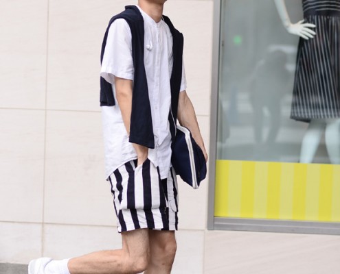 トップス(H&M)、ショートパンツ(Name.)、スニーカー(adidas)、カバン(CORDURA)