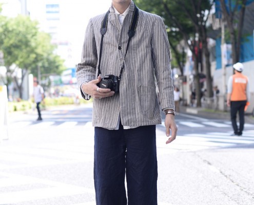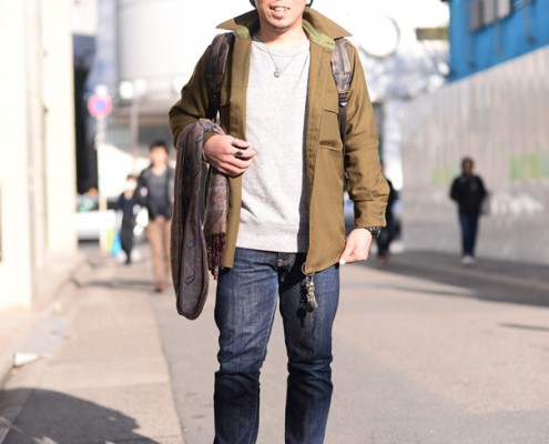ジャケット(USED)、シャツ(USED)、デニム(USED)、シューズ(USED)、メガネ(UNKNOWN)