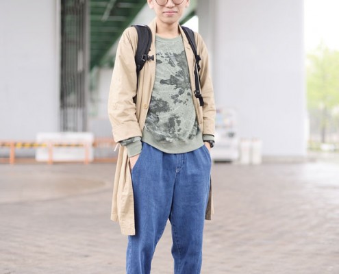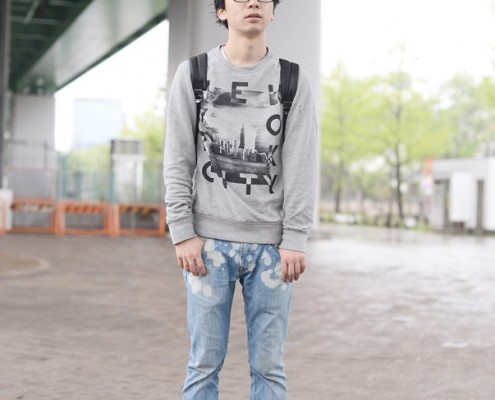 スウェット(H&M)、デニムパンツ(GAP)、スニーカー(NIKE)、バックパック(LORINZA×nano…