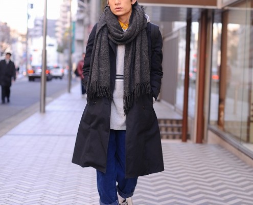 コート(UNIQLO×UNDERCOVER)、デニムパンツ(mercibeaucoup,)、ブーツ(George…