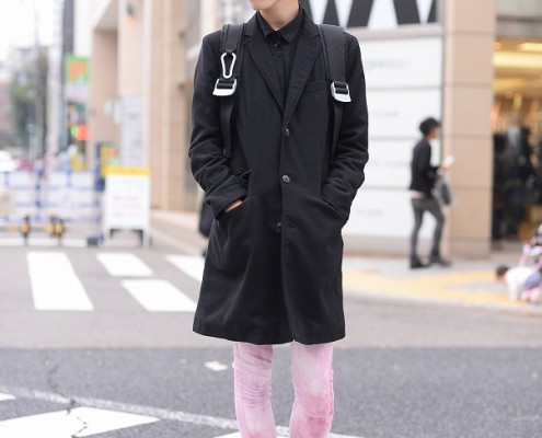 コート(USED)、シャツ(USED)、レギンス(ハンドメイド)、スニーカー(CONVERSE)、ニット(C-PLUS…