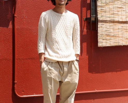 サマーニット(EDIFICE)、スニーカー(VANS)、メガネ(OLIVER…