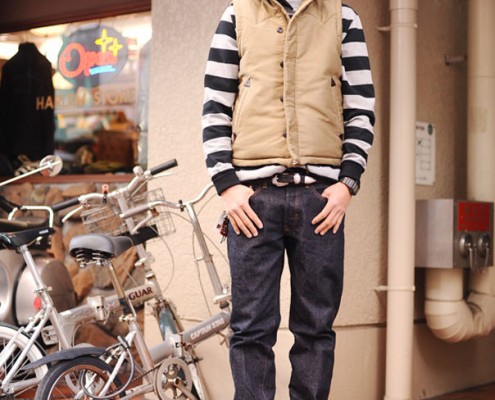 ベスト(WESTRIDE)、パーカ(WESTRIDE)、デニムパンツ(STUDIO…