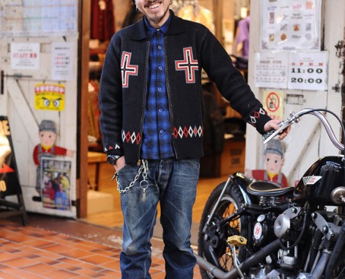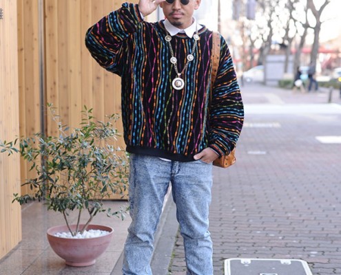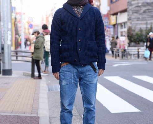 ニット(TOYO)、デニムパンツ(TROPHY…