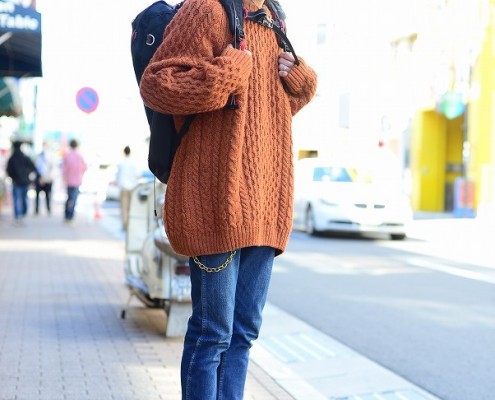 ニット(?)、パンツ(Levi’s)、靴(converse)、ベレー帽(CA4LA)、カバン(KLATTERMUSEN)、メガネ(BLACK…