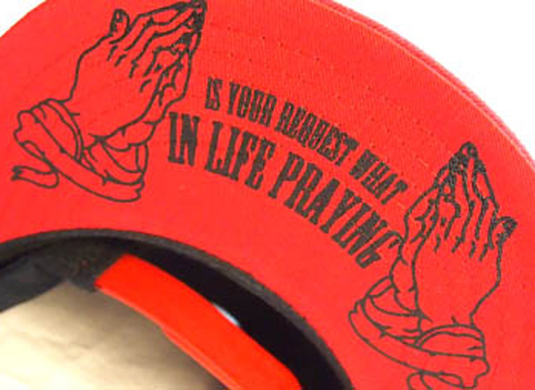 夏の定番メッシュキャップ。ブランドをロゴを配置し、ツバ裏にはプレイングハンドプリント!
