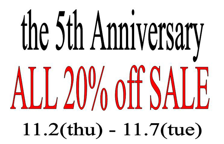 レギュラー古着からヴィンテージ、リメイクまで大人向けのアイテムをラインナップする名古屋•栄の古着ショップ『Bluezz&cheeK』。同店は、明日11月2日(木)に5周年を迎える。日頃の感謝を込めて、11月2日(木)〜7日(火)まで対象外なしの全品20%OFFセールを開催!日頃から通っている方も初めての方もこの期間中はお祝いに、そして買い物をどうぞお楽しみ下さい。