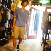- コットンシルク Tシャツ/¥17280(ASEEDONCLOUD)【SIZE:M】、ツータックリネンショートパンツ/¥5184(USED)【SIZE:30】、ソックス/¥3024(ASEEDONCLOUD)【SIZE:M】※全て税込