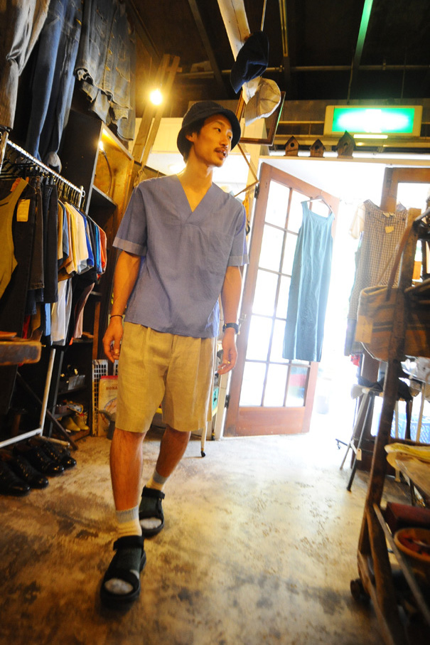 - コットンシルク Tシャツ/¥17280(ASEEDONCLOUD)【SIZE:M】、ツータックリネンショートパンツ/¥5184(USED)【SIZE:30】、ソックス/¥3024(ASEEDONCLOUD)【SIZE:M】※全て税込